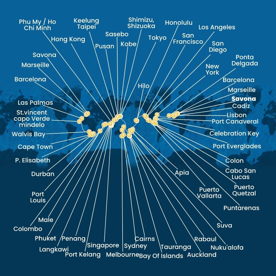 - Travessia por 3 oceanos (Atlântico, Pacífico e Índico)